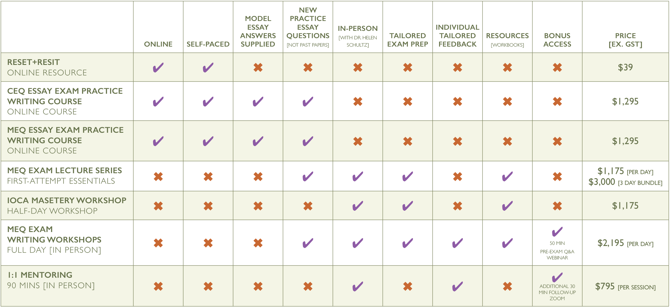 Unlike other exam preparation courses, I focus less on curriculum and more on the structure and approach to writing beautiful essays that meet the requirements of the RANZCP. I recognise that RANZCP trainees have all the content they need to pass, and just need help with how to answer MEQ/CEQ essay questions by showcasing what they know.
